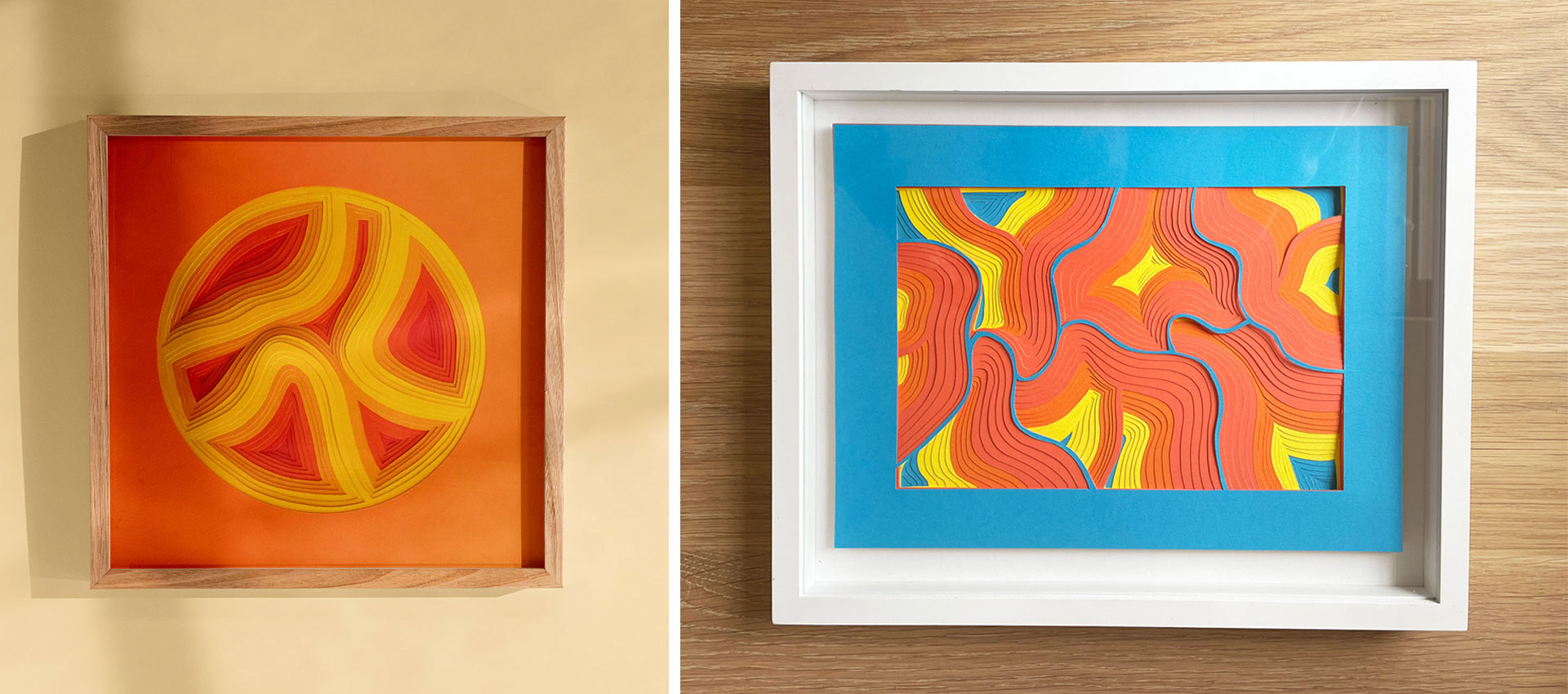 A collection of art pieces by Mocholoco using paper as medium with rich colour combinations and shapes.